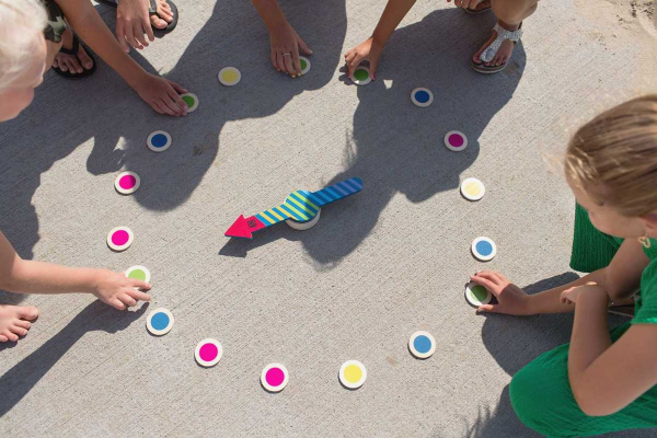 Lasst eurer Kreativität freien Lauf, denn bei diesem Spiel könnt ihr euch unendlich viele Möglichkeiten ausdenken. Entscheidet euch für eine Aktion und stellt euch dann mit allen Spielern in einen Kreis, dreht den Pfeil und wartet, auf wen er zeigt, dieser Spieler muss die Aufgabe erfüllen. Oder man legt die Zahlenchips um den Pfeil und denkt sich eine Tätigkeit aus. Der Pfeil zeigt an, wie oft die Gruppe dies tun soll. Man kann sich aber auch lustige Rechenspiele ausdenken oder mit den Farben spielen oder...inklusive einer Anleitung mit zahlreichen Beispielen.