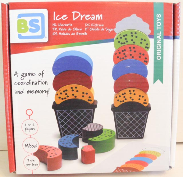 Nimm dir eine Vorlagenkarte und staple deine Eiskugeln entsprechend. Sieger ist derjenige, welcher zuerst sein Eis vollständig hat, ohne dass der Stapel fällt…