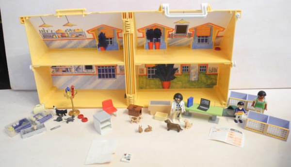 mit Möbeln, Tiere, 3 Figuren und Kleinmaterial. Röntgengerät fehlt.