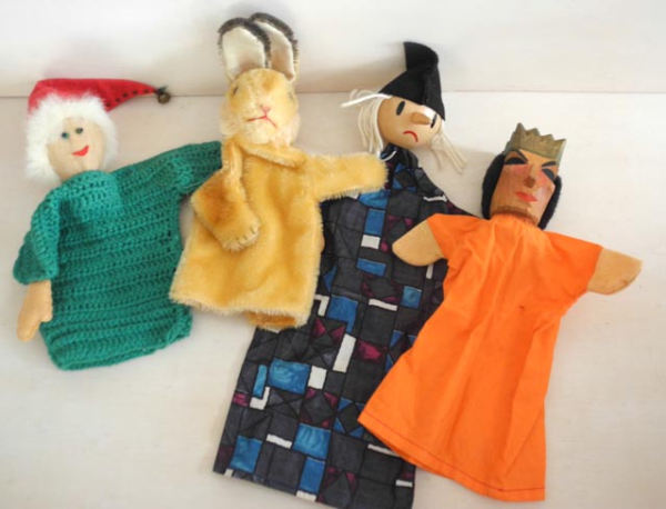 4 Stück. verschiedene Köpfe, aus Holz und Stoff. Etwas Gebrauchtspuren.