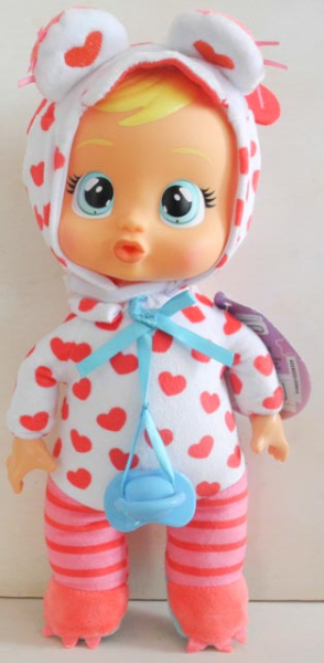 aus Stoff. mit Schnuller. Beim Hinterkopf Wasser einfüllen, dann weint es. von IMC Toys. mit Etikette. ohne Verpackung.