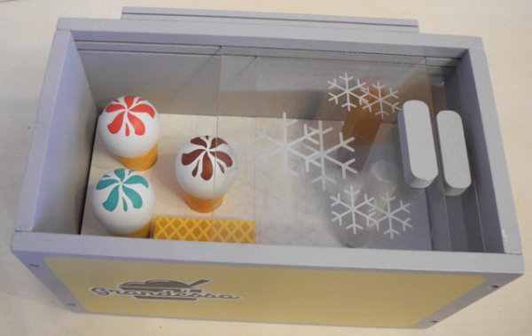 Tiefkühltruhe mit Glace aus Holz